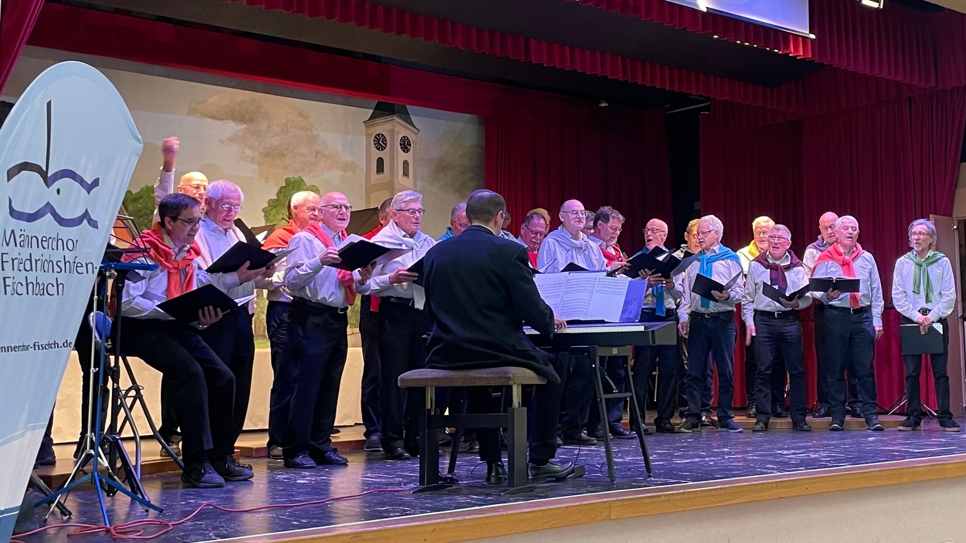 Der gastgebende Männerchor Friedrichshafen-Fischbach präsentierte zum Auftakt unter der Leitung von Wilhelm Brommer «Der Freundschaft Band» und das feierliche «Highland Cathedral». Anschließend eröffnete Vize-Präsident Josef Bielau die Versammlung, in deren Rahmen nicht nur berichtet, beraten und abgestimmt, sondern auch viel gesungen wurde. Der Jugendchor St. Columban und seine Dirigentin Maritta Hasenmüller setzten mit «Lindenbaum», «Plaudite, plaudite» und «You’ve got a friend» eindrucksvolle Akzente und gewannen das Publikum mit dem humorvollen «Dusche-Kanon» zum eifrigen Mitsingen.