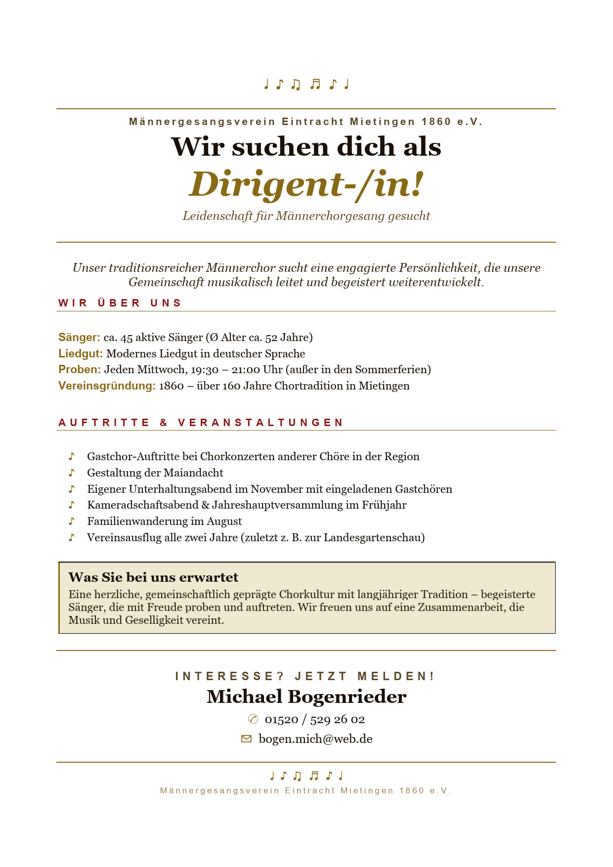 Hier finden Sie die aktuellen Ausschreibungen unserer Verbandschöre: